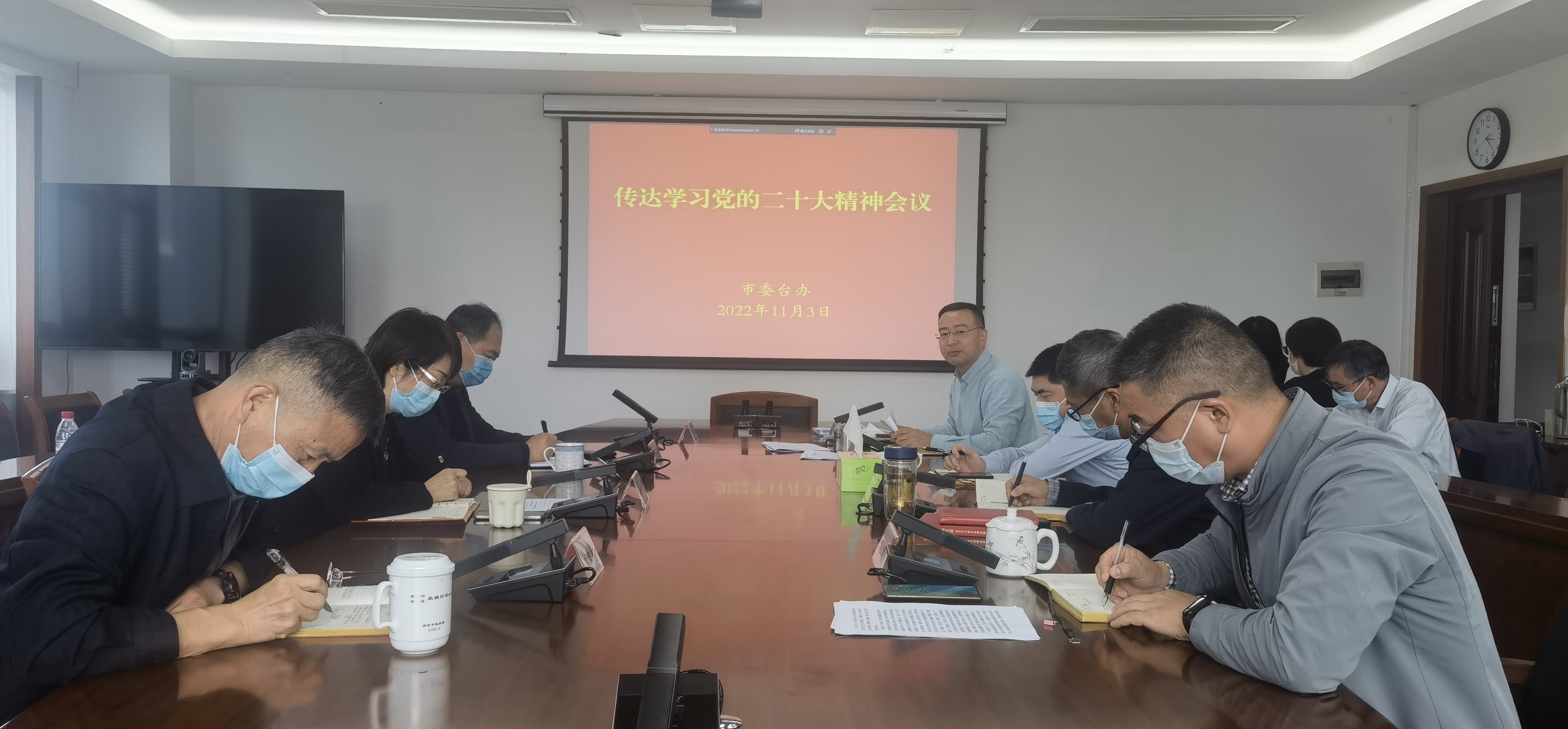 会议要求,要把深入学习宣传贯彻党的二十大精神和二十届一中全会精神与习近平总书记对江苏工作的重要指示精神结合起来,一体领悟、一体贯彻,坚决扛起“争当表率、争做示范、走在前列”光荣使命,全力推动今年各项目标任务如期实现,为奋力谱写“强富美高”新江苏现代化建设南京新篇章提供坚强保证。一要提高政治站位。市委台办是贯彻落实中央对台工作大政方针和市委市政府对台工作部署的执行部门,在学习宣传贯彻党的二十大精神上要走在前、作表率、当标杆。要把学习宣传贯彻党的二十大精神作为当前和今后一个时期的首要政治任务、长期战略任务,以实际行动践行“两个维护”,更加坚定地在思想上同心同德、在政治上旗帜鲜明、在行动上紧紧跟随,努力打造让党中央和省市委放心、让全市人民满意的对台工作政治机关。二要加强工作部署。学习宣传贯彻党的二十大精神,要立足市委台办党的建设的实际,大力弘扬马克思主义学风,把党的二十大和二十届一中全会精神落实到对台工作事业发展各方面,体现到做好今年各项工作和明年工作计划之中。待市委部署以后,按照市委和机关工委要求认真组织学习宣传贯彻党的二十大精神,教育引导广大党员干部把思想和行动统一到党的二十大精神上来。三要认真组织学习研讨。通过邀请巡学旁听,督促检查和指导机关各支部将党的二十大精神作为党的创新理论学习重要内容。发挥好党支部主体作用,通过“三会一课”、集体学习、个人自学等形式,组织党员干部深刻领会党的二十大精神实质。引导广大党员干部坚定跟党走、建功新时代、奋进新征程。真正把贯彻落实二十大和二十届一中全会精神的过程转化为定思路、出实招、抓落实的过程,全面提升机关党建质量。四要结合对台工作实践。以党的二十大精神为新的动力,结合工作实际,更好地谋划和推动对台各项工作,在服务中央对台工作和南京经济社会发展“两个大局”中,充分运用和发挥市台办“宁台携手赢”党建品牌载体作用,常态长效服务台资企业转型发展、融合发展,助力台资企业做大做强,实现“宁台携手、融合发展,党建引领、行稳致远”发展目标,坚持人民至上、坚持自信自立、坚持守正创新、坚持问题导向、坚持系统观念、坚持胸怀天下,切实把党的创新理念贯彻到对台工作各方面全过程,真正做到领会新思想、引领新实践,立足新时代、谋划新思路,树立新标杆、争创新业绩。