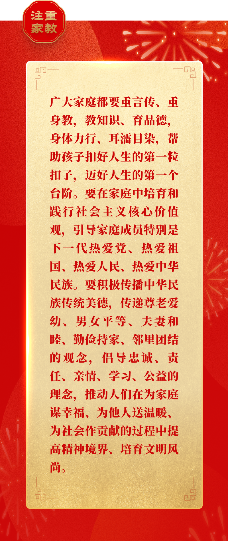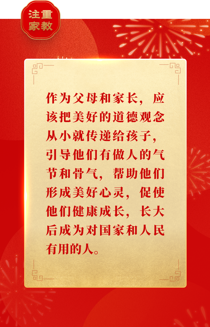 “家庭是人生的第一个课堂,父母是孩子的第一任老师。孩子们从牙牙学语起就开始接受家教,有什么样的家教,就有什么样的人。”