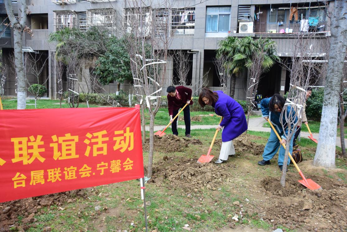 南苑中区的植树现场一片热火朝天的景象,镐头起落声与欢声笑语相互交织。挥锹培土、扶苗填土、浇水灌溉,经过大家的辛勤劳作,一棵棵树苗在春风中昂首挺立,为社区增添了一抹新绿。泥土沾满裤腿,笑容绽放脸庞。南京市台属联谊会副会长、宁馨会副会长马岚望着成排的树苗感慨道:“今年新增的桃花树苗,桃花寓意着爱情、美好生活、长寿健康和繁荣兴旺。希望这些树苗扎根南京,未来枝繁叶茂。”
