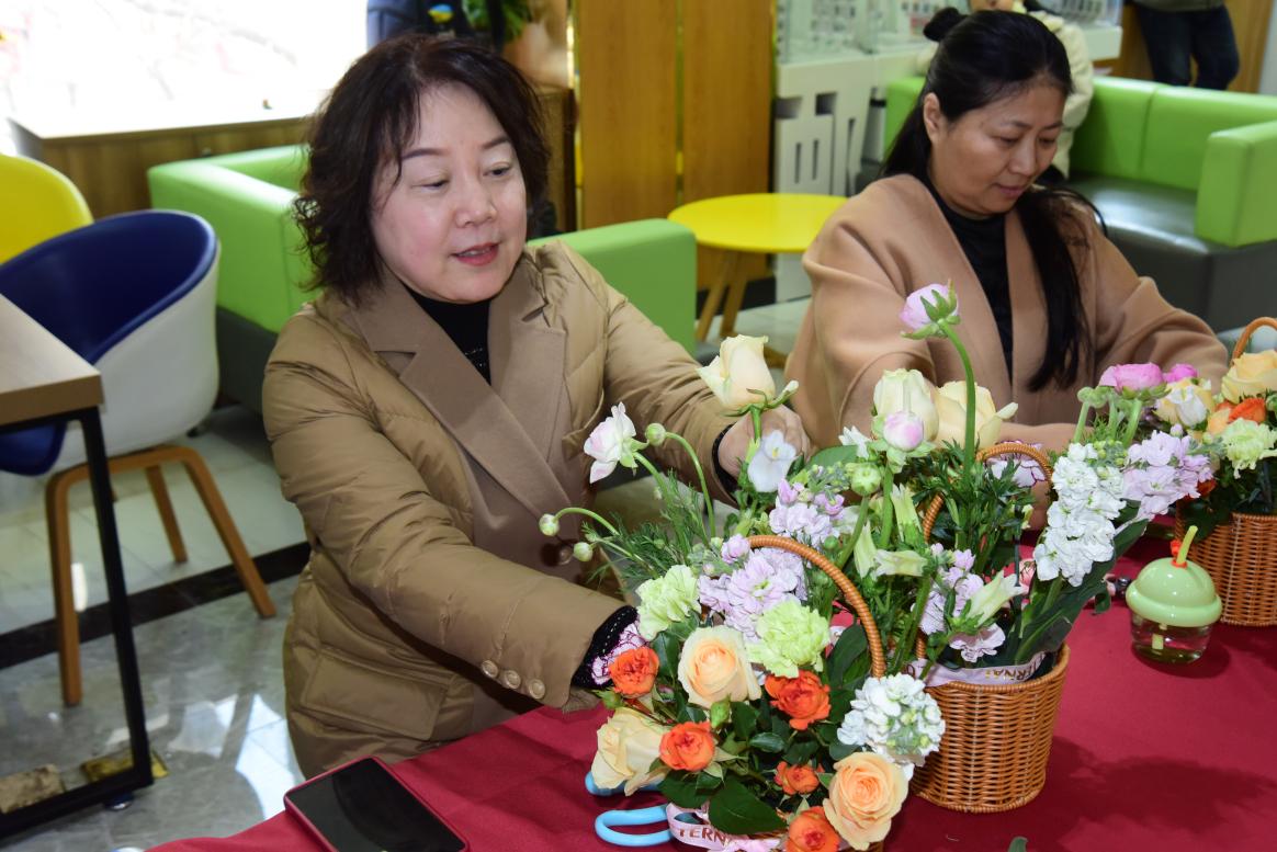 社区党群服务中心二楼活动室变身艺术天地。插花老师现场指导居民和台胞用玫瑰、紫罗兰、风铃花、康乃馨等花材创作“春日馨香”主题作品。今日恰逢三八妇女节,一盆盆娇艳欲滴、造型各异的花篮摆在女士们的面前,让在场女士脸上绽放灿烂笑容。茶歇区里,精致点心和香醇茶水营造出惬意的交流氛围,两岸同胞围坐品茶聊天,分享活动喜悦与生活点滴。插花活动,为忙碌的活动增添了优雅惬意,也为两岸同胞搭建了深入交流、增进友谊的平台。