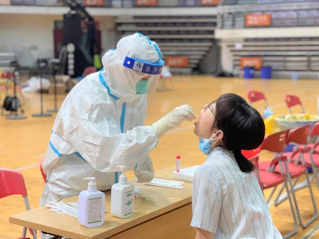 在南京各采样点,每一位队员穿着密不透风的防护服全力投入核酸检测志愿工作。“摘口罩,抬头,张大嘴” 相同的话每天重复无数次。虽然汗水打湿了衣服,雾气遮住了眼罩,但他们没有退缩,他们操作流程专业规范,克服了炎热天气的考验,细心、耐心、用心地以最专业的态度为每一位居民进行核酸检测。