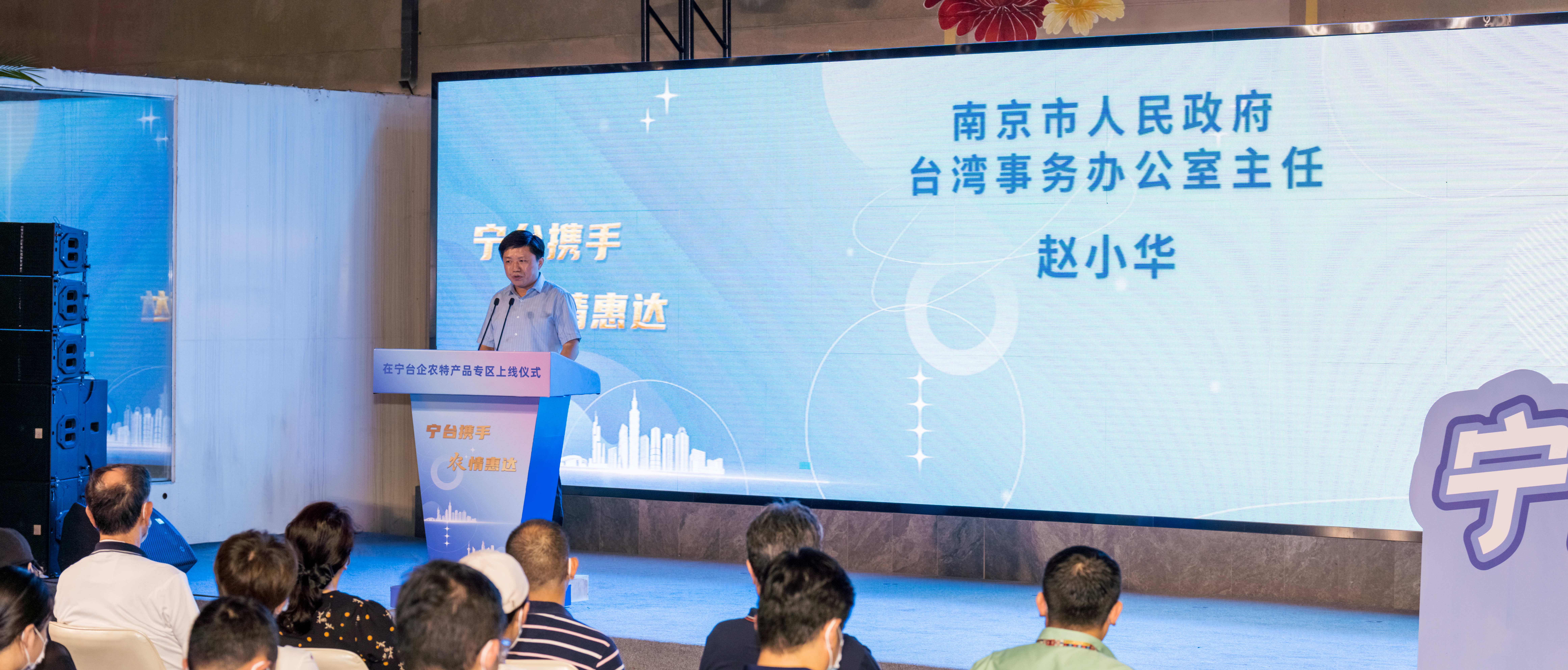 市台办主任赵小华代表主办单位致辞。他表示,“十四五”时期是开启全面建设社会主义现代化国家新征程的第一个五年,也是全面推进乡村振兴战略、加快推进农业农村现代化建设的关键阶段。我们会同市农业农村局、市商务局共同举办在宁台企农特产品专区上线活动,就是要帮助在宁台资农业企业进一步拓展大陆市场,参与大陆农业高质量发展,助力乡村振兴。举办这场活动,是我们贯彻落实新时代党解决台湾问题总体方略的具体举措,我们愿意与台湾同胞率先分享大陆发展机遇,促进两岸融合发展;是我们落实《关于支持台湾同胞投资企业在大陆农业林业领域发展的若干措施》的南京实践,我们借助南京本地互联网平台,让大陆百姓更多地了解台企农产品,让台湾同胞增强对祖国大陆发展的认同;是我们落实市委市政府常态化开展“服务企业·面对面”大走访的要求、关心企业发展的现实需要,我们帮助在宁台企积极应对疫情影响,坚定在宁发展信心,进一步做大做强。